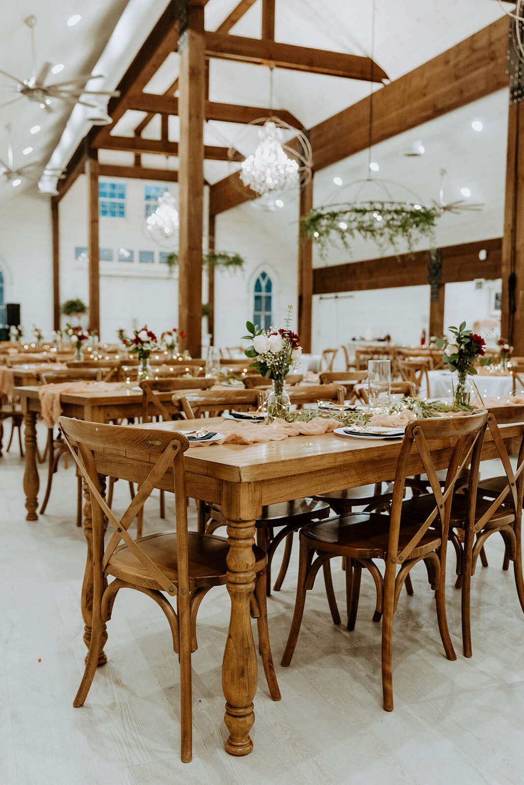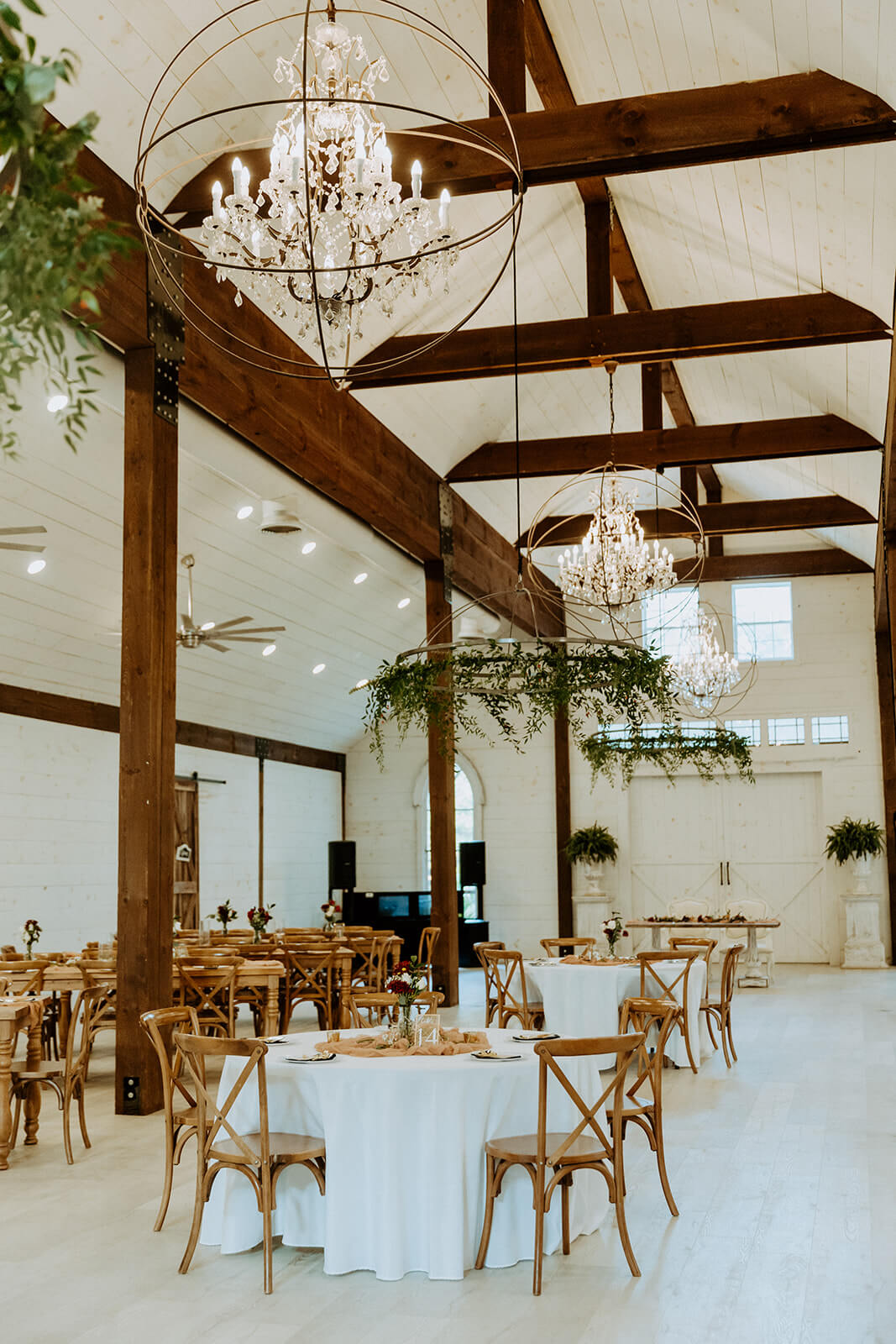 Let’s start with the obvious: the barn itself. With its crisp white exterior, vaulted ceilings, and elegant chandeliers, Chandler Oaks Barn is a showstopper for your ceremony or reception. It gives you that cozy, intimate vibe of a classic barn wedding but with an upscale twist.